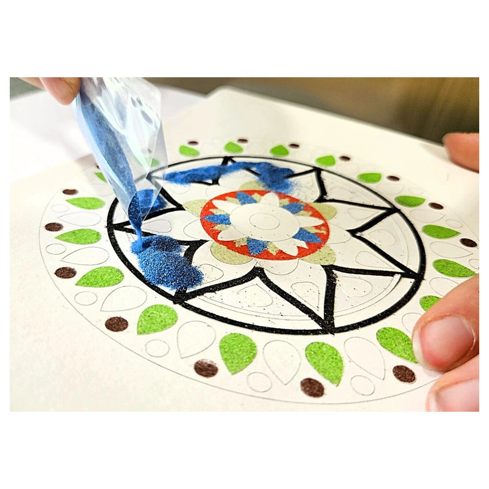 • Complete Creative Set: Contains a pre-cut, self-adhesive mandala image along with eleven vibrant shades of coloured sand.