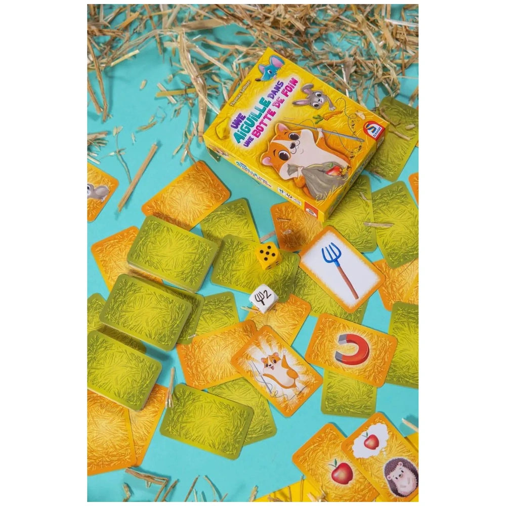 Introducing "The Needle in the Haystack," an enchanting card game from Schmidt Spiele that invites players into a whimsical world filled with adventure and laughter. This delightful game is perfect for families and young explorers, offering a unique blend of strategy, excitement, and a touch of luck. As players navigate the chaotic haystack, they will help Harry Hamster recover his scattered food while racing against time to find the elusive needle that will mend his sack. With its engaging premise and vibrant artwork, "The Needle in the Haystack" promises to be a hit at any game night.