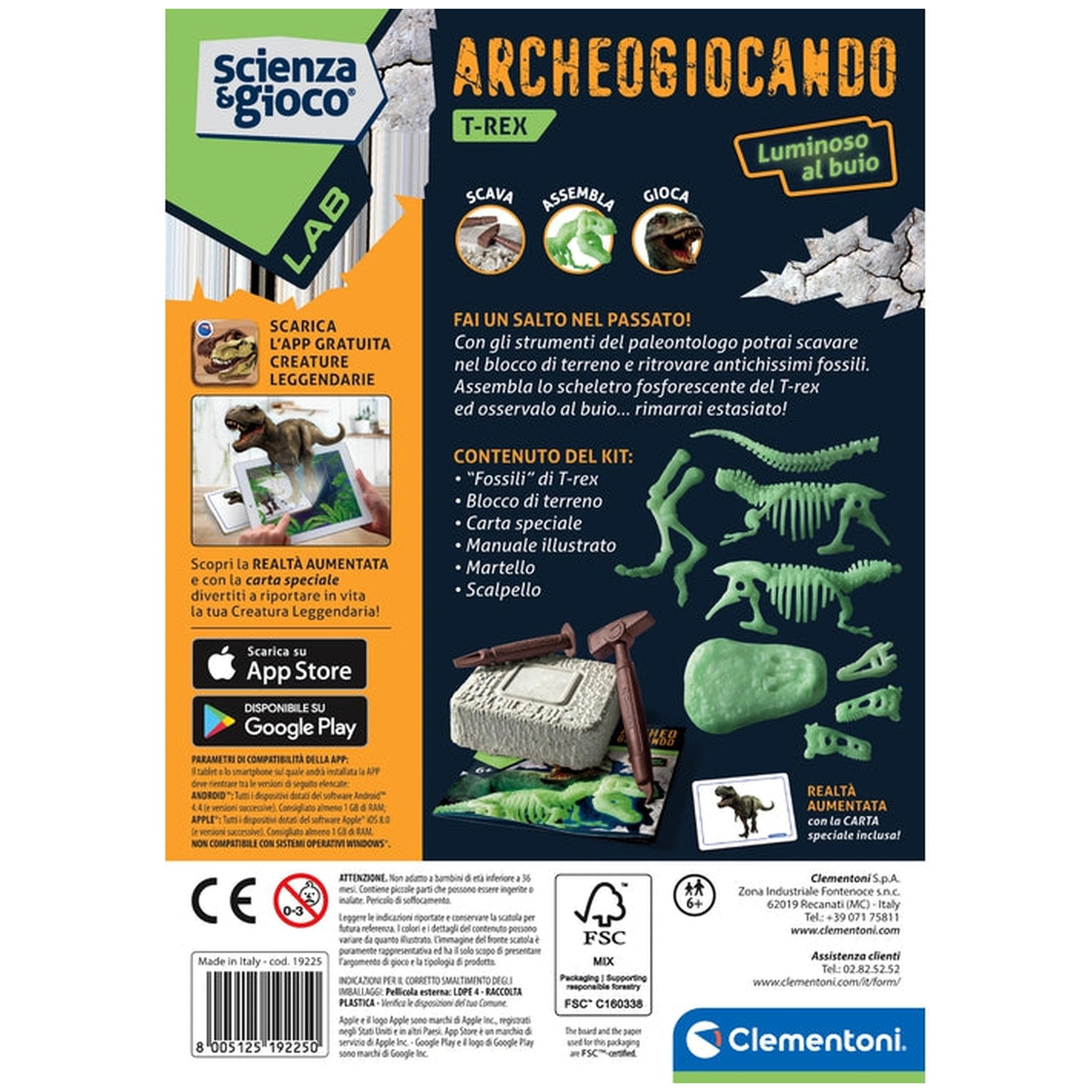 Clementoni Scienza E Gioco Lab - Archeogiocando - Jouets de jeu Tirannosaure Rex qui brillent dans le noir