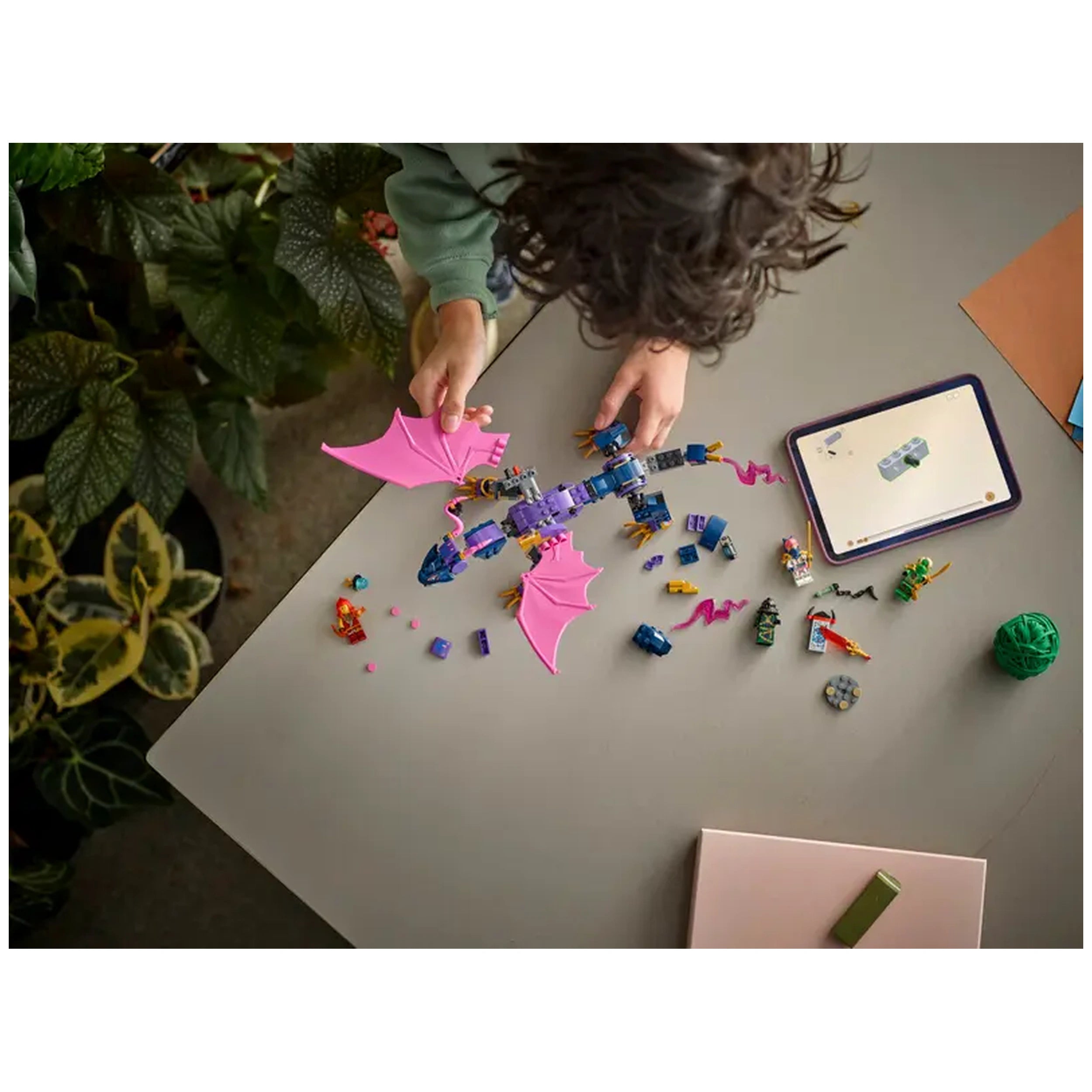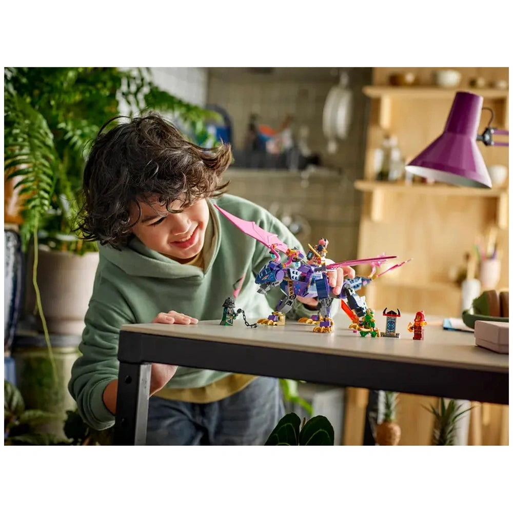 LEGO - Rontu le Maître Dragon - Figurines d'Action et de Jouets Découvrez le set de construction LEGO® NINJAGO® Rontu le Maître Dragon (71842), une addition palpitante au monde de NINJAGO qui invite les jeunes bâtisseurs âgés de 7 ans et plus à plonger dans l'univers riche en action de la série télévisée Dragons Rising. Ce set de construction méticuleusement conçu non seulement stimule la créativité, mais offre également un moyen engageant pour les enfants de recréer leurs scènes préférées de la saison 3. Avec ses détails complexes et ses caractéristiques dynamiques, Rontu le Maître Dragon est sûr de captiver l'imagination des garçons et des filles. Le point central de ce set est la figurine de dragon hautement articulée, qui possède une queue, des pattes, des ailes, une tête et une mâchoire tous ajustables pour un jeu dynamique. Les enfants peuvent placer leurs minifigurines dans deux positions différentes sur le dos de Rontu, permettant des aventures aériennes passionnantes. De plus, chaque aile est équipée d'un lanceur de studs, permettant aux jeunes ninjas de s'engager dans des batailles palpitantes contre leurs ennemis. Le design impressionnant du dragon rend non seulement le montage agréable, mais en fait également une pièce de collection fantastique une fois terminée. Le set comprend quatre minifigurines NINJAGO : les héros ninjas Lloyd, Sora et Wyldfyre, ainsi que le vilain Maître du Malheur, Zarkt. Chaque minifigurine est accompagnée de son propre accessoire d'arme unique, permettant aux enfants de mettre en scène des confrontations épiques entre le bien et le mal. L'ajout d'un mini sanctuaire en briques ajoute une couche d'excitation supplémentaire, car il est gardé par Zarkt et contient un message secret que Lloyd peut révéler à l'aide de son accessoire de lame translucide. Ce set LEGO ne se limite pas à la construction ; il offre une expérience de jeu complète qui encourage la narration imaginative. La combinaison du dragon, des minifigurines et du mini sanctuaire permet d'innombrables possibilités de jeu de rôle. Les enfants peuvent créer leurs propres récits, développant leur créativité et leurs compétences en résolution de problèmes tout en naviguant dans les défis de l'univers NINJAGO. Pour les parents à la recherche du cadeau d'anniversaire parfait, le set Rontu le Maître Dragon est un choix idéal. Il offre une expérience de construction et de jeu interactive qui ravira tout enfant passionné par l'action ninja. Avec 381 pièces, ce set propose un défi gratifiant qui occupera les enfants pendant des heures. Pour améliorer l'expérience de construction, l'application LEGO Builder est disponible, guidant les enfants à travers une aventure intuitive. Cette application leur permet de sauvegarder leurs sets, de suivre leurs progrès et même de zoomer et de faire pivoter les modèles en 3D pendant qu'ils construisent. La figurine de Rontu le Maître Dragon mesure plus de 12 centimètres de haut, ce qui en fait un ajout frappant à toute collection LEGO. Ne manquez pas l'occasion d'inspirer créativité et aventure : procurez-vous dès aujourd'hui le set LEGO® NINJAGO® Rontu le Maître Dragon et laissez les batailles commencer !