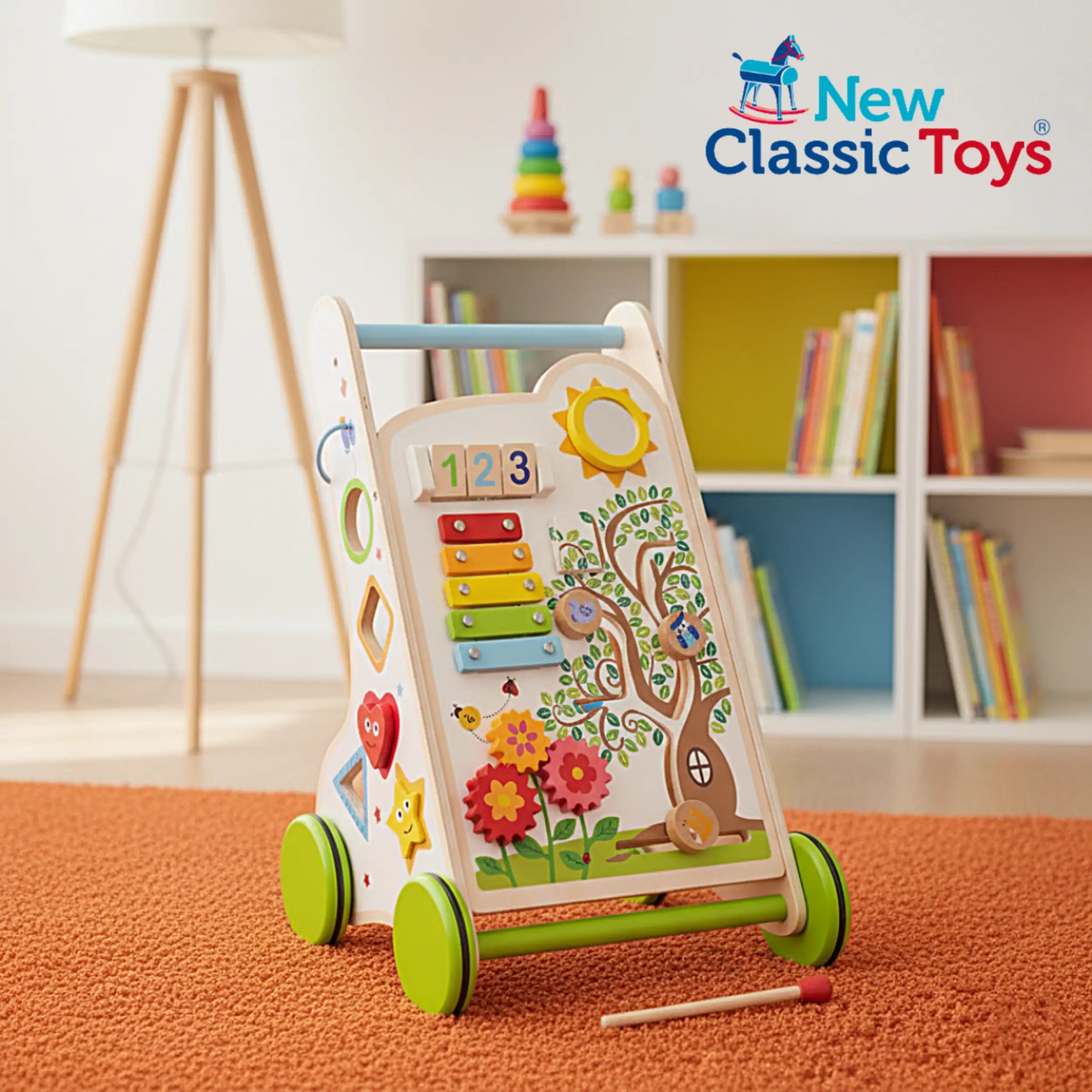 Introducing the New Classic Toys Activity Walker, a delightful and engaging baby activity toy designed to support your child's developmental milestones. This innovative walker is not just a means for your little one to take their first steps; it is a comprehensive play station that combines mobility with a variety of stimulating toys. Crafted with care and attention to detail, this product is perfect for infants who are ready to explore their surroundings while enhancing their creativity and coordination.