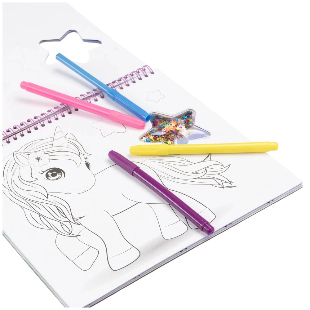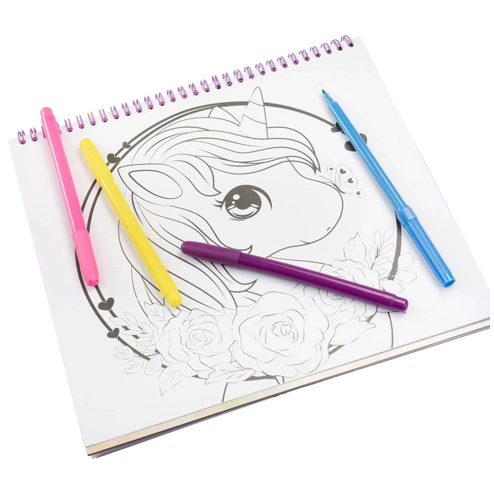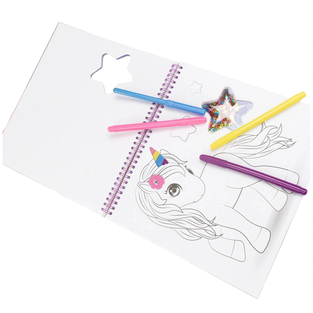 Nice - Girabrilla Magic Unicorn Sketchbook - Livres Découvrez le Nice - Girabrilla Magic Unicorn Sketchbook, un compagnon créatif enchanteur conçu pour inspirer les jeunes artistes et les passionnés de licornes. Ce carnet de croquis magique n'est pas qu'une toile vierge ; c'est un portail enchanté vers un monde rempli de licornes fantaisistes et d'aventures étincelantes. Parfait pour les enfants de quatre ans et plus, ce carnet encourage l'imagination et l'expression artistique, en faisant un cadeau idéal pour les anniversaires, les fêtes ou toute occasion spéciale. Le Girabrilla Magic Unicorn Sketchbook présente une couverture captivante ornée d'une étoile en paillettes scintillantes, attirant instantanément l'attention et éveillant la curiosité. Chaque page de ce livre magnifiquement conçu est destinée à enflammer la créativité, présentant des croquis charmants de licornes qui invitent les enfants à leur donner vie avec des couleurs. Le papier de haute qualité garantit que chaque coup de crayon, de marqueur ou de crayon de couleur glisse en douceur, offrant une expérience de coloriage agréable. Au-delà du simple coloriage, ce carnet propose un élément interactif avec une page dédiée à des autocollants doux. Les enfants peuvent personnaliser leurs œuvres en ajoutant ces adorables autocollants à leurs dessins, enrichissant leurs projets créatifs et rendant chaque page unique. Cette combinaison de coloriage et d'application d'autocollants favorise non seulement la créativité, mais aide également à développer la motricité fine et la coordination œil-main. Conçu avec praticité à l'esprit, le carnet est doté de couvertures rigides robustes et d'une reliure à anneaux pratique, facilitant la manipulation pour les petites mains. Mesurant 26,5 cm de large, 24 cm de haut et 2 cm de profondeur, il est parfaitement dimensionné pour les voyages. Que ce soit à la maison, dans la voiture ou chez un ami, ce carnet peut accompagner votre enfant dans toutes ses aventures, garantissant que la créativité ne connaît pas de limites. Le Nice - Girabrilla Magic Unicorn Sketchbook est plus qu'un simple livre ; c'est une invitation à explorer les royaumes de l'imagination. Alors que les enfants colorient et créent, ils s'engagent dans un voyage rempli de joie et d'inspiration, découvrant la magie qui réside dans leurs capacités artistiques. Ce carnet divertit non seulement, mais nourrit également un amour pour l'art et la créativité qui peut durer toute une vie. Ne manquez pas l'occasion d'inspirer le jeune artiste de votre vie ! Achetez le Nice - Girabrilla Magic Unicorn Sketchbook aujourd'hui et regardez-le libérer sa créativité, une page colorée à la fois. Commandez maintenant et laissez la magie des licornes et de l'art transformer leur monde !