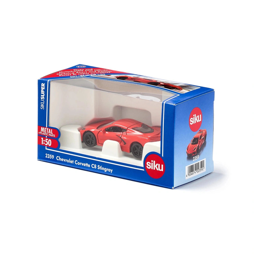 Introducing the Siku - Chevrolet Corvette Stingray - Play Vehicles, a remarkable miniature representation of one of the most iconic sports cars in automotive history. This meticulously crafted model captures the essence of the C8 Stingray, a revolutionary vehicle that has redefined the Corvette legacy. With its mid-engine design, the Stingray offers a unique driving experience that enhances agility and performance, making it a must-have for car enthusiasts and collectors alike.