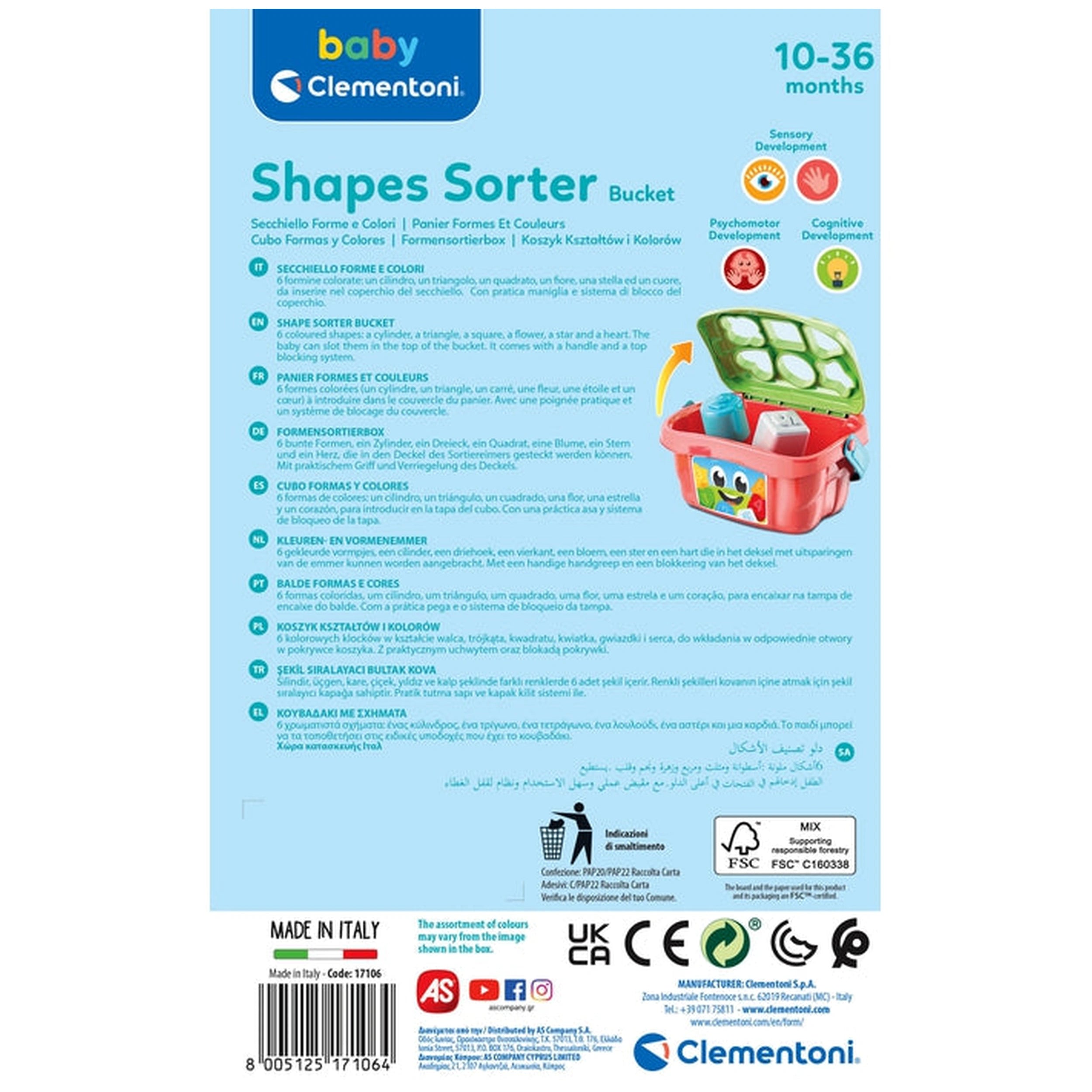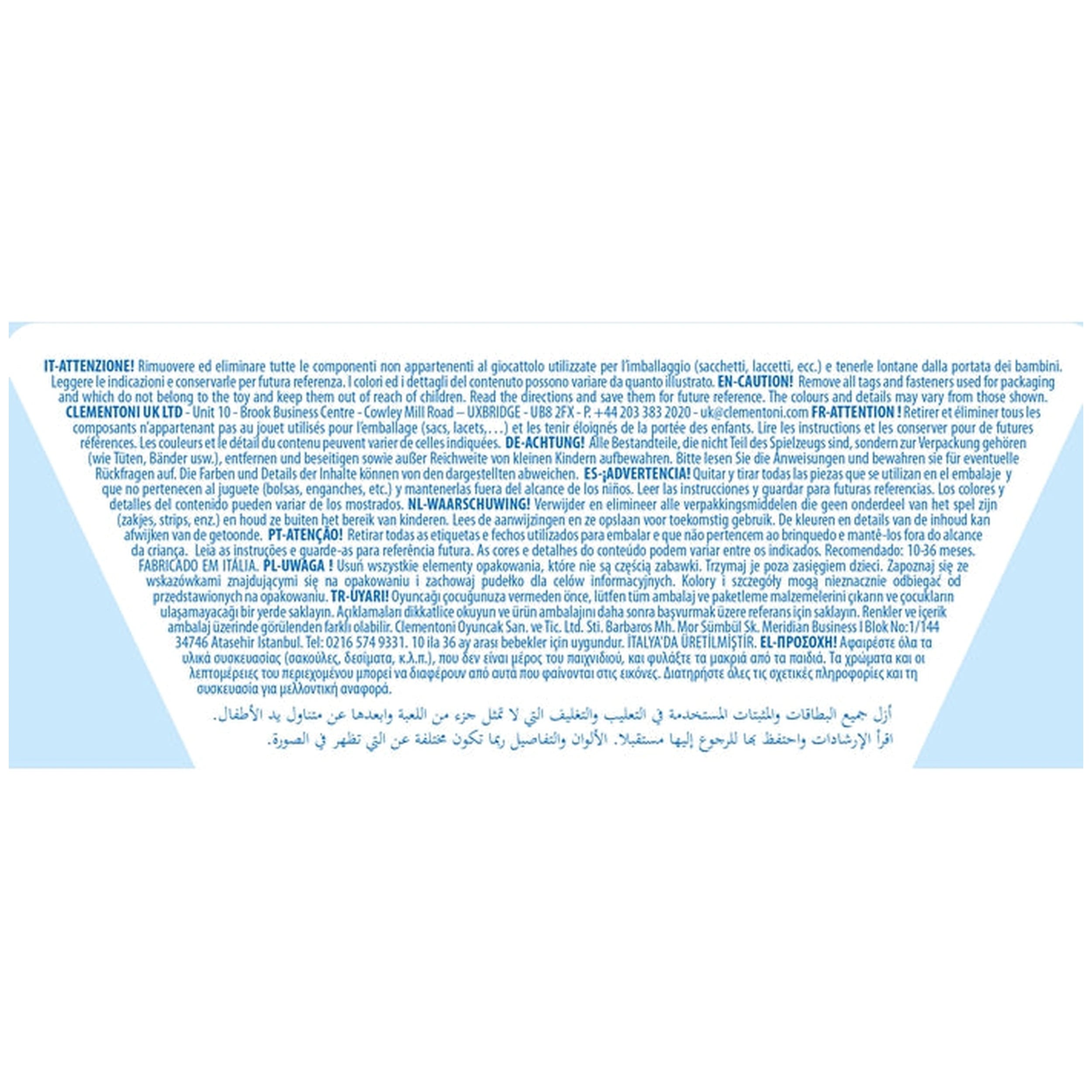 Baby Clementoni - Vormen Sorteeremmer Sorteer- en Stapel Speelgoed Maak kennis met de Baby Clementoni - Vormen Sorteeremmer, een boeiend en educatief speelgoed dat is ontworpen om jonge geesten te fascineren en tegelijkertijd essentiële ontwikkelingsvaardigheden te bevorderen. Dit heerlijke sorteer- en stapel speelgoed bevat een levendige emmer gevuld met zes uniek gevormde stukken, elk gemaakt om peuters te helpen hun eerste cijfers, vormen en kleuren te herkennen. Met zijn speelse ontwerp en interactieve elementen is de Vormen Sorteeremmer een ideale metgezel voor kinderen van 10 tot 36 maanden, waardoor leren een leuke en aangename ervaring wordt. De Vormen Sorteeremmer is niet zomaar een speelgoed; het is een hulpmiddel voor de ontwikkeling in de vroege kindertijd. Terwijl kinderen zich bezighouden met de zes kleurrijke vormen, verbeteren ze hun hand-oogcoördinatie en fijne motoriek. Het sorteren en stapelen van deze vormen stimuleert de cognitieve groei, terwijl peuters leren verschillende vormen te identificeren en te matchen, en ook het concept van oorzaak en gevolg begrijpen. Deze praktische ervaring legt de basis voor kritisch denken en probleemoplossende vaardigheden die hen in latere levensfasen ten goede zullen komen. Met het oog op praktische bruikbaarheid is de Vormen Sorteeremmer uitgerust met een handige handgreep, zodat kleintjes hun speelgoed overal mee naartoe kunnen nemen. Of het nu thuis, in het park of tijdens een speelafspraak is, deze draagbare emmer zorgt ervoor dat plezier en leren altijd binnen handbereik zijn. Bovendien heeft het veilige deksel een vergrendelmechanisme, waardoor de vormen veilig blijven en er geen ongelukken kunnen gebeuren tijdens het transport. Met zorg vervaardigd in Italië, weerspiegelt de Baby Clementoni Vormen Sorteeremmer een toewijding aan kwaliteit en veiligheid. Elk stuk is gemaakt van niet-giftige materialen, zodat kinderen vrij kunnen spelen zonder gezondheidszorgen. De levendige kleuren en boeiende vormen zijn ontworpen om de aandacht van peuters te trekken, waardoor speeltijd een spannend avontuur wordt dat hun verbeelding en nieuwsgierigheid stimuleert. Ouders zullen de educatieve waarde van de Vormen Sorteeremmer waarderen, omdat het niet alleen vermaakt, maar ook essentiële vaardigheden bij hun kinderen bevordert. Dit speelgoed is een uitstekende introductie tot basisconcepten van wiskunde en geometrie, en legt de basis voor toekomstig leren. Door verkenning en ontdekking aan te moedigen, helpt de Vormen Sorteeremmer kinderen een liefde voor leren te ontwikkelen die een leven lang meegaat. Kortom, de Baby Clementoni - Vormen Sorteeremmer is een must-have voor elke ouder die de speeltijd van hun kind wil verrijken met educatieve voordelen. Met zijn boeiende ontwerp, praktische functies en focus op vaardigheidsontwikkeling, zal dit speelgoed zeker een favoriet worden onder peuters en ouders. Mis de kans niet om uw kind een leuke en educatieve ervaring te bieden—bestel vandaag nog de Baby Clementoni Vormen Sorteeremmer en zie hoe ze gedijen terwijl ze leren door te spelen!