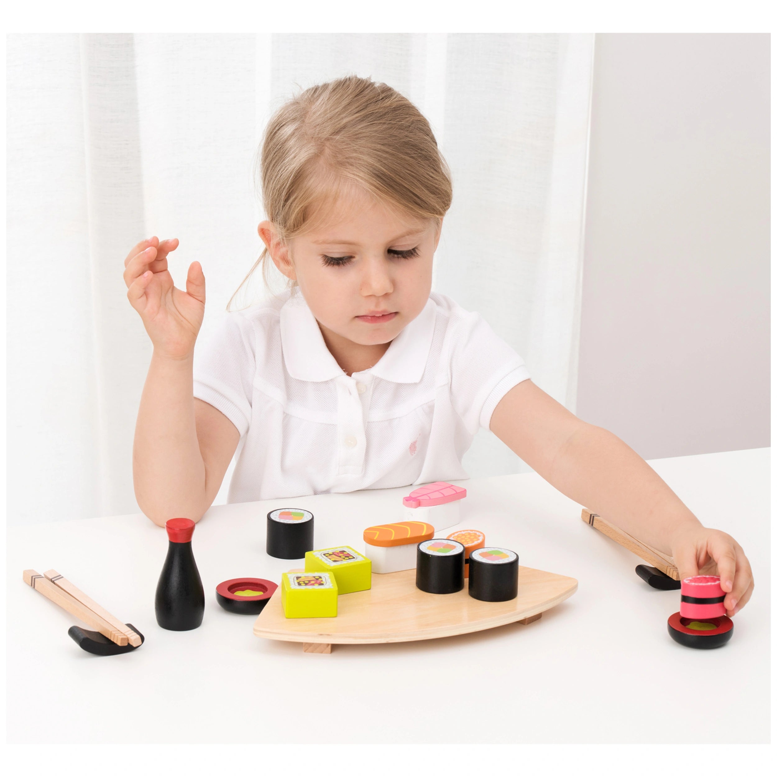 New Classic Toys - Sushi Set - Doen alsof Beroepen & Rollenspel Maak kennis met de New Classic Toys Sushi Set, een prachtig houten speelset ontworpen om de culinaire creativiteit van jonge voedselenthousiastelingen te inspireren....