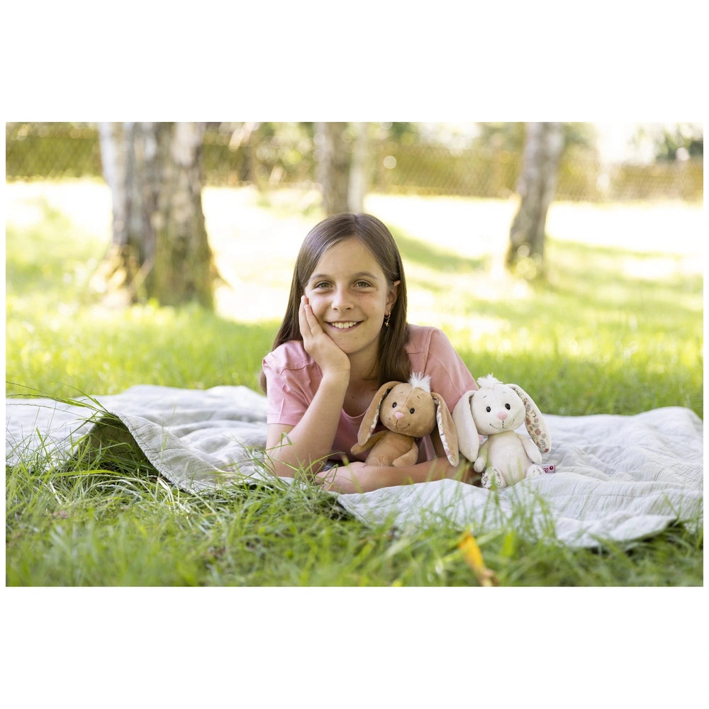 Introducing the NICI Soft Toy Happy Rabbit in Light Brown, a delightful addition to any child's toy collection. This charming 20 cm plush bunny is designed to bring joy and comfort, making it an ideal companion for both playtime and snuggle sessions. With its adorable tuft of fur on its head and a soft, fluffy body, this bunny is sure to capture the hearts of children and adults alike.