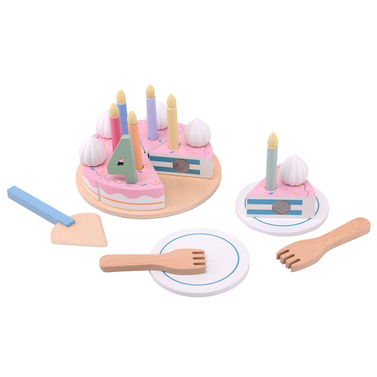 Johntoy - Wooden Birthday Cake Playset - Pretend Professions & Role Playing