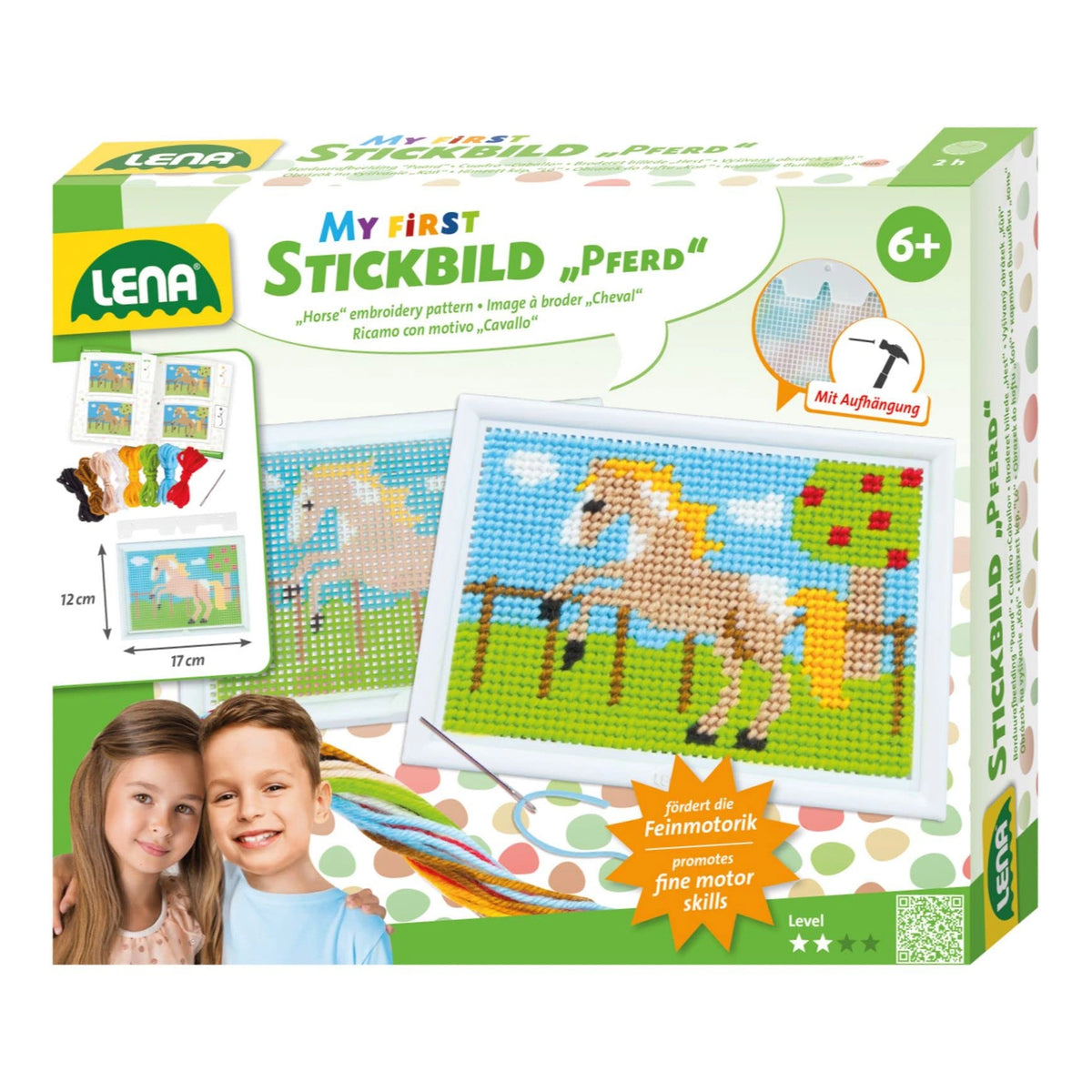 Introducing the Lena - My First Horse Embroidery Pattern Set, a delightful arts and crafts kit designed to inspire creativity and skill development in children. This comprehensive embroidery set is perfect for young crafters aged six and above, making it an ideal gift for birthdays or special occasions. With its engaging design and easy-to-follow instructions, children can embark on a fun and rewarding crafting journey that promotes fine motor skills, concentration, and patience.