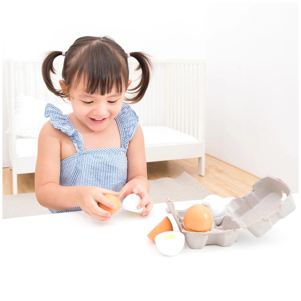 Introducing the New Classic Toys - Toy Eggs, a delightful set of four wooden eggs housed in a charming, realistic egg carton. Designed specifically for imaginative play, these toy eggs are perfect for children who love to engage in pretend professions and role-playing scenarios. As part of the esteemed "Bon Appetit" product line, this set encourages creativity and culinary exploration, making it an essential addition to any child's toy collection.