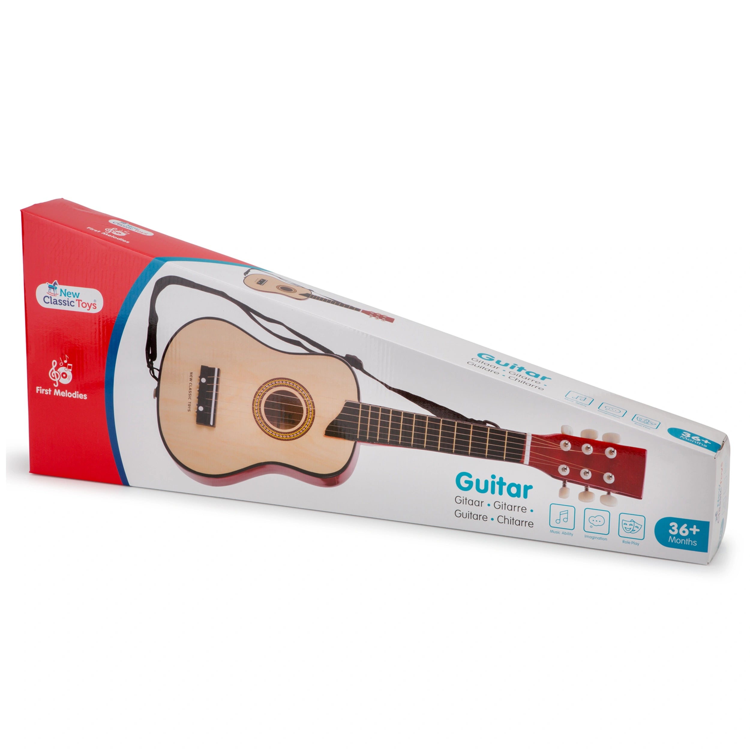 Introducing the New Classic Toys - Toy Guitar Deluxe in a charming brown finish, a delightful musical instrument designed to inspire creativity and joy in your child's playtime. This beautifully crafted wooden guitar is not just a toy; it’s a gateway to a world of music and imagination. With its realistic design and engaging features, your little one will be ready to strum their way into the spotlight, captivating family and friends with their very own performances.
