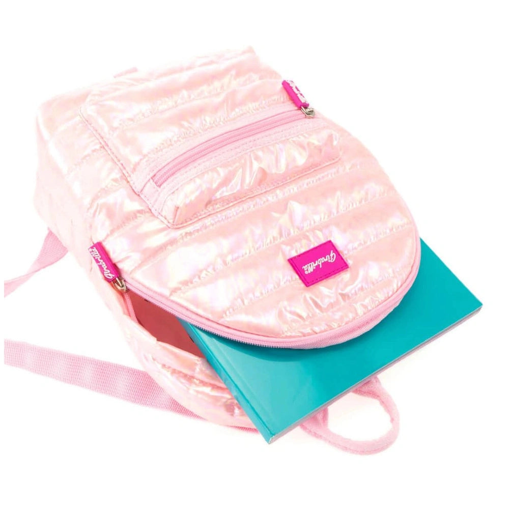 Introducing the Nice - Girabrilla Puffer Casual Backpack, a stylish and functional accessory designed for children aged six and above. This eye-catching backpack is perfect for school, leisure activities, and outdoor adventures. With its shimmering colors and soft iridescent fabric, the Girabrilla Puffer Backpack not only stands out but also offers practicality and comfort for young users.