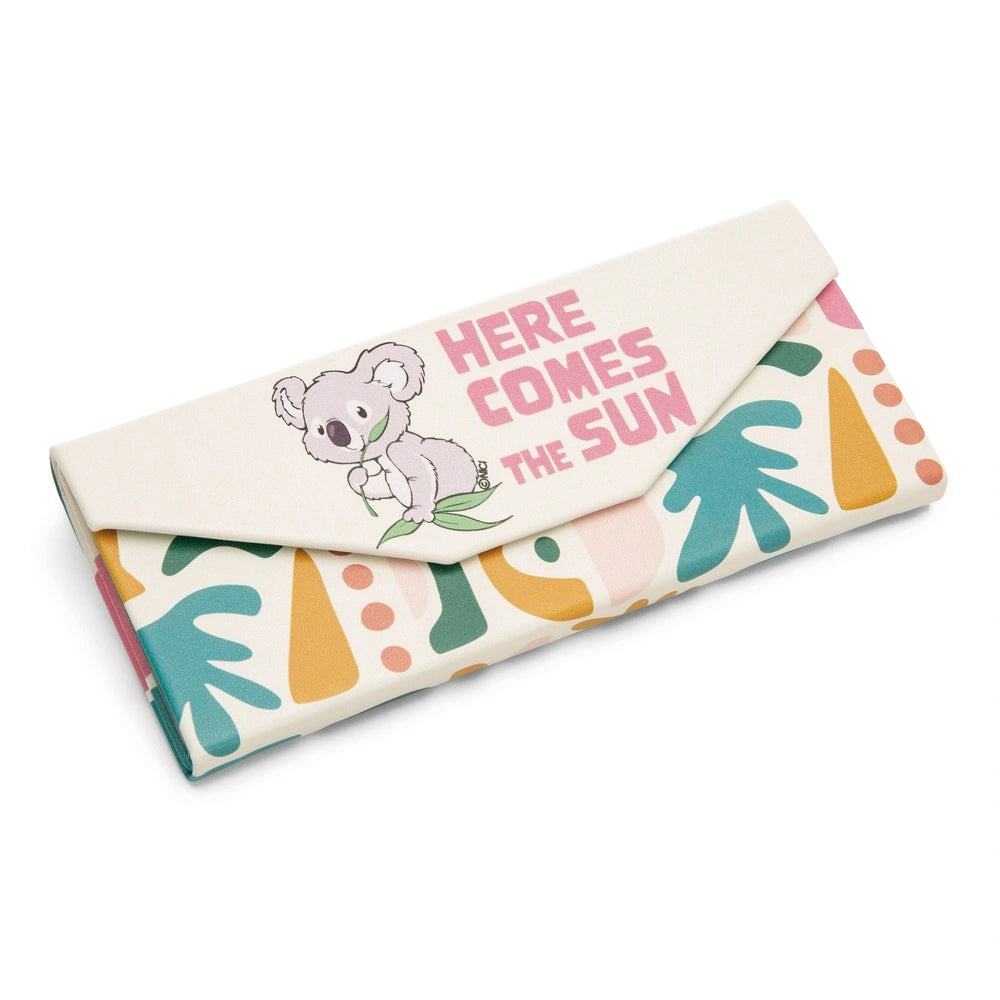 Introducing the NICI Wild Friends Foldable Glasses Case featuring an adorable koala design, measuring 6.5 x 16 x 1.5 cm. This delightful accessory is perfect for anyone who values both functionality and style in their eyewear storage. The vibrant graphics showcase a charming koala surrounded by eucalyptus leaves, accompanied by the uplifting slogan "Here comes the sun." This design not only adds a touch of whimsy but also serves as a reminder of the joy found in sunny days.